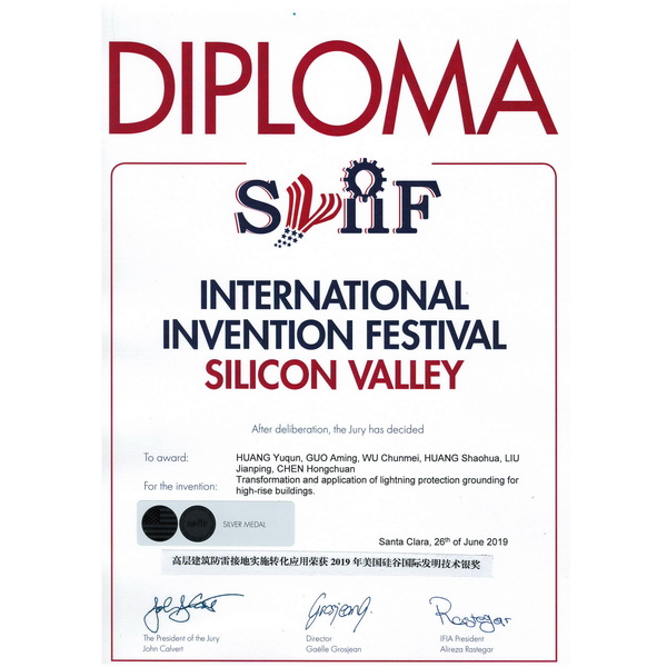 2019年美國(guó)硅谷國(guó)際發(fā)明技術(shù)銀獎(jiǎng)(高層建筑防雷接地實(shí)施轉(zhuǎn)化應(yīng)用)