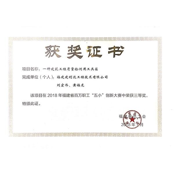 2018年福建省百萬職工“五小”創(chuàng)新大賽三等獲